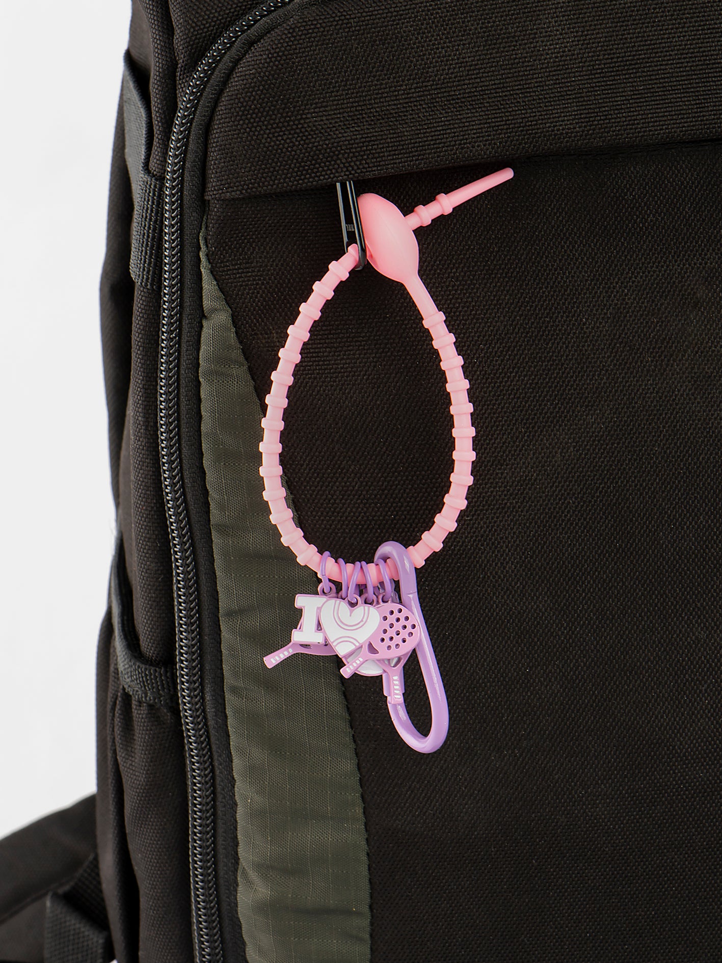 Llavero de goma con dijes varios y distintivo para tus artículos personales.