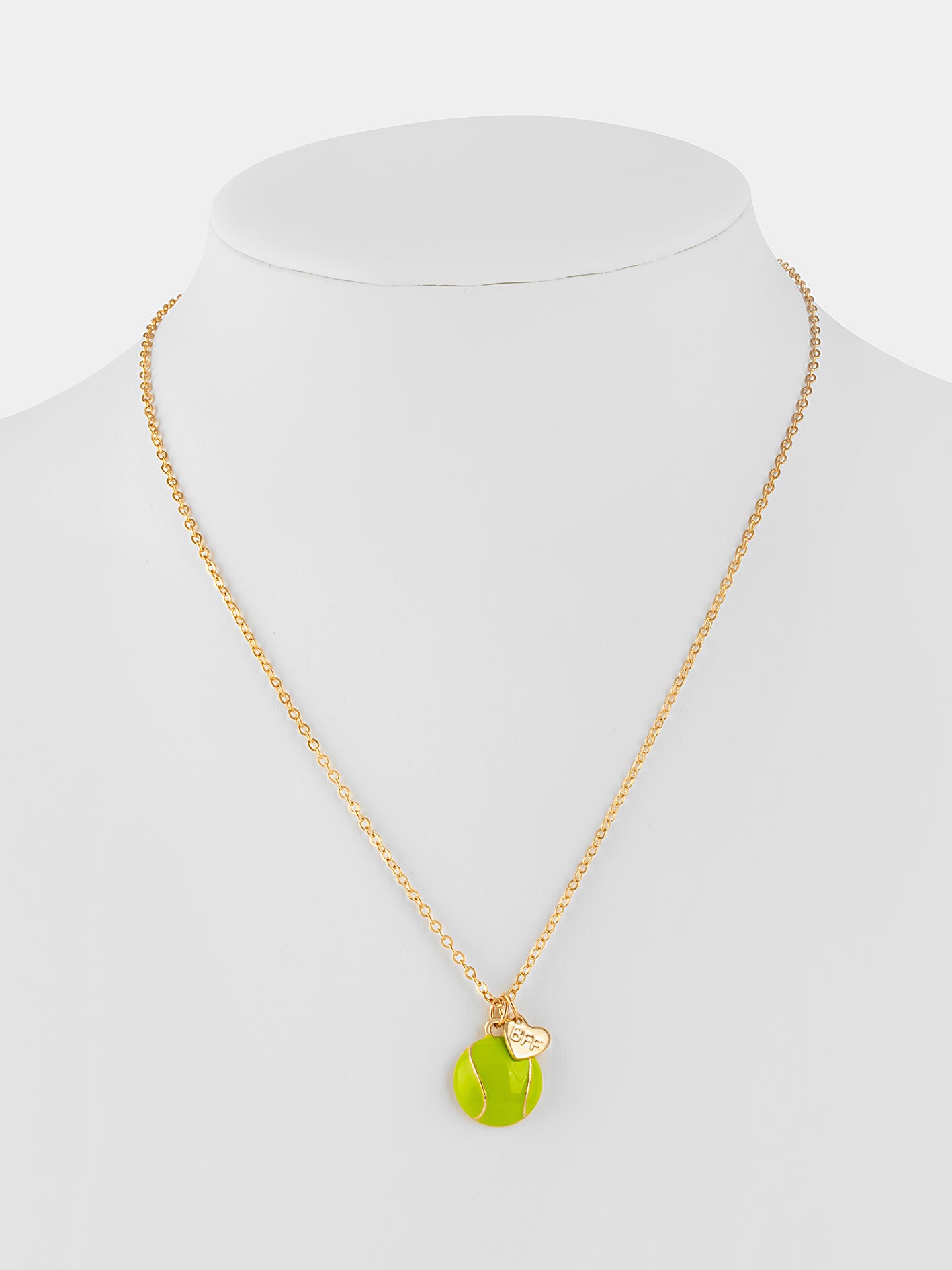 Set de dos collares color dorado con dijes en forma de pelota color verde y pala rosa.